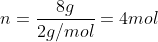 siendo n la cantidad de materia en moles, m la masa en gramos y M la masa molar en g/mol.